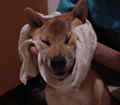 | この日はよその犬と遊んで 泥々になったので 体も拭いてやりました。 |